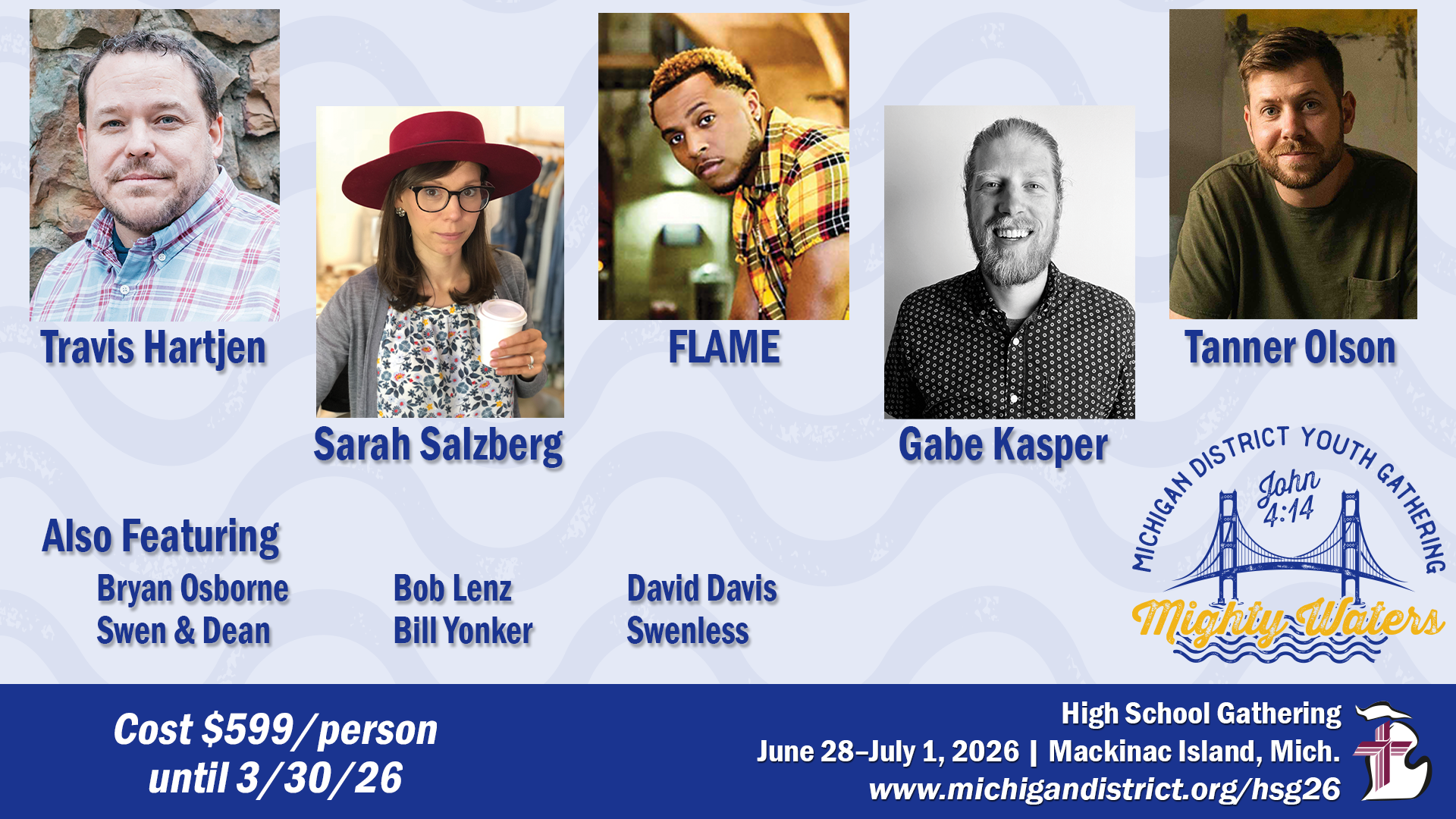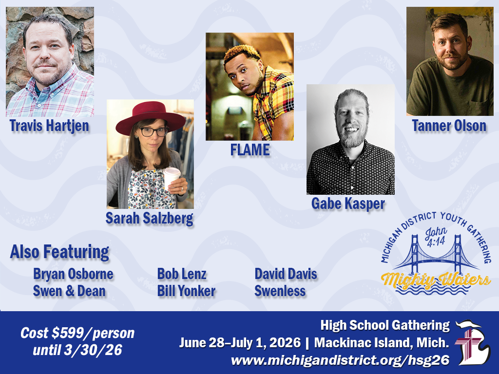 Mackinac Island is the perfect location for this theme. Being surrounded by water on the island, we will be reminded of the peace that water can bring as well as the mighty power and strength of water. But the mighty water of the Straits of Mackinac pales in comparison to the power of water together with God’s Word, and the saving power that we receive through it.